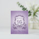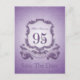 Diseño en el estilo del escudo de armas en color púrpura con gran 95ª + "CELEBRACIÓN DE CUMPLEAÑOS" en una cinta. Diseño en la postal vertical "Save the Date" con el nombre (delante) y texto al personalizar (atrás). Puede cambiar fácilmente el texto (color, fuente, tamaño y posición) haciendo clic en el botón personalizar. Disponible con diseño para los cumpleaños 60, 70, 80, 90. Invitación de cumpleaños coincidente, libro de invitados de cumpleaños (cuaderno de espiral), caja de favores, etiqueta de regalo, suministros de fiesta (servilleta de papel y placa de papel), almohada, taza y otros regalos de cumpleaños para abuelas.