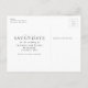 Comparte la noticia de tu compromiso y matrimonio inminente con esta foto vertical ahorra la postal de fecha con un elegante tratamiento tipo en blanco en la parte superior de tu foto de compromiso. En la parte trasera hay espacio para el mensaje de su personalizado que puede incluir detalles para los huéspedes y su sitio web boda.