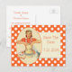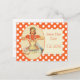 Boda retro caprichosa salva la postal de la fecha hecha en un patrón de puntos de polka blanco y naranja, con la imagen de una mujer retro cocinando. Personalice el texto de forma divertida y económica para anunciar sus planes bodas.