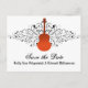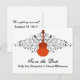 Perfecto para el anuncio de un boda con temática de rock y roll es esta moda de mecedoras de guitarra Swirls Guardar la postal de fecha en naranja. Este diseño único cuenta con una guitarra damáscara flanqueada por cascadas de elegantes batidos. Fácil de personalizar, simplemente añada los detalles de su boda en los espacios proporcionados. Haga clic en el botón "Personalizar" para encontrar opciones de personalización adicionales.