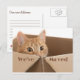 Que todos sepan que han encontrado un nuevo hogar y les den su nueva dirección. Naranja lindo gatito en una caja