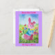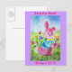 Pascua Guardar la postal de fecha. Esta tarjeta está decorada con un cuadro de un conejo recogiendo flores.