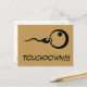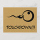 Postal de embarazo de Guay. Una tarjeta postal de cartón de historieta genial con icono de esperma y huevo y el texto: Touchdown ! ¡La forma perfecta y original de decirle a sus amigos que esperan un bebé!