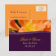 Púrpura y naranja Guardar la postal Fecha. Personalízalo con los detalles de su boda. Puede cambiar fácilmente el color del texto, el tipo de letra, el tamaño y la posición haciendo clic en el botón personalizar.