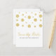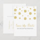 Purpurina lindo y caprichoso Look Confetti Guardar la postal de fecha con falsos purpurinas de confetti en oro. Esta postal sencilla y moderna se puede personalizar fácilmente con su información boda. Para obtener más opciones de personalización, haga clic en Personalizar. //NO PURPURINA REAL - IMAGEN PLANA DIGITAL IMPRESA//