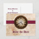 Esta tarjeta postal antigua Save the Date incluye un reloj vintage que se centra de forma destacada en la parte superior de una metalizado cadena de bolas y un elegante borde de rayas rosa fucsia. El aspecto angustiado del fondo de textura de papel grueso completa el ambiente anticuado de este diseño único. Este offbeat guarda la postal de fecha perfecta para anunciar su boda de inspiración vintage o steampunk. Fácil de personalizar, simplemente añada los detalles de su boda en los espacios proporcionados. Haga clic en "Personalizar" para encontrar opciones adicionales para personalizar este diseño.