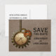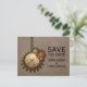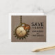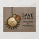 Esta exclusiva Boda de reloj de vintage Save the Date Postcard en mocha marrón presenta relojes de veta antiguos y engranajes colgados por una cadena de peras metalizado. El fondo tiene un papel texturado y un overlay de malla que le da un aire angustiado y soso al diseño. Esta extravagante y desagradable tarjeta postal de fecha sería perfecta para anunciar a su boda inspirado en steampunk. Fácil de personalizar, simplemente añada los detalles de su boda. Haga clic en el botón "Personalizar" para encontrar opciones de personalización adicionales.