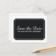 Boda moderna y de moda Sencillamente Elegante Ahorra la postal de fecha con un diseño elegante de emblema de boleto negro. Este diseño clásico y elegante es fácil de personalizar con sus detalles bodas. Para obtener más opciones de personalización, haga clic en Personalizar.