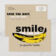 Arte gráfico: Banana orientada a formar una sonrisa + texto pequeño entre corchetes: (es bueno para la salud). Perfecto para cualquiera que siga sonriendo año tras año. Diseño en postal de invitación con textos para el 80º cumpleaños Guardar la fecha en personalizar. Puede cambiar fácilmente el texto (fuente, color, tamaño y posición) haciendo clic en el botón personalizar. Invitación de cumpleaños, libros de cumpleaños (portada dura y cuaderno de espiral), servilleta de papel de cumpleaños, plato de papel y más...