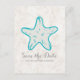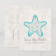 Perfecto para un boda de temática náutica es esta Rustic Starfish Wedding Save the Date Postcard con una estrella de mar turquesa sobre un fondo de mármol beige claro. Esta playa clásica y sencilla, salvo la postal de fecha, es fácil de personalizar con los detalles de su boda. Para obtener más opciones de personalización, haga clic en Personalizar.