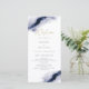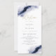 Este programa de bodas presenta salpicaduras bohemias de color azul marino y una tipografía de escritura dorada. Utilice este orden de tiempo del día de bodas para su boda bohemio tropical o vinícola o modifique para cualquier otro evento.