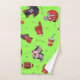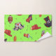El dibujo de los equipos deportivos incluye casco, camisa, bola y comida con diseño de fondo verde de garabatos.