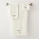 Apellido de la pareja personalizar, año, número Toalla de baño Set texto negro, fondo marfil