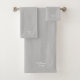 Apellido de la pareja personalizar, año, número Toalla de baño Set texto blanco, fondo gris claro