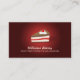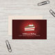 La plantilla adaptable de la tarjeta de visita para la panadería, la tienda de chucherías, los dulces y los postres haciendo con el ilustracion del vector/el logotipo de la cereza del chocolate apelmazan la rebanada en rojo y crema.