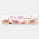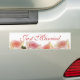 Los rosas rosados delicados y el texto de lujo de la escritura, apenas casado, hacen que esta pegatina para el parachoques una necesidad tiene para cualquier coche de las novias.