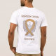 Apéndice La conciencia sobre el cáncer utiliza una cinta ámbar para su conciencia de la causa. El arte de la camisa muestra un cuadro de ángel de la cinta de conciencia ámbar. El mensaje de la camiseta del ángel de la conciencia dice "Apéndice Conciencia sobre el cáncer". Hay una gran imagen en la parte posterior de la camisa y una imagen más pequeña en la parte delantera de la camisa. La ropa de arte de la cinta de ángel de la conciencia ámbar se puede personalizar con mensajes personalizados para hacer ropa de evento de gran causa para camisetas de recaudación de fondos, camisetas de caminatas del equipo de grupo, regalos de camisetas de concientización u otros eventos de causa especial para la mercadería para ayudar a aumentar la conciencia de esta causa en público por la ayuda de la sociedad en crear ayuda y causar cambio.