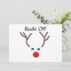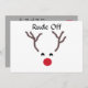 Invitación humorística "Rude Off" en frente con diseño de renos y gran nariz roja. De fondo gris la invitación con "Estás invitado a un Fiesta" en colores rojo y verde. ¡Puede ser personalizar si lo desea!