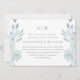 Anuncio de aplazamiento de boda con tipografía clásica y flores azules y follaje simple y bonito con parte posterior de foto completa de la tarjeta. Este anuncio elegante es una forma chic de informar a los invitados que la fecha de su boda se está reprogramando debido a circunstancias imprevistas.
