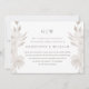 Anuncio de aplazamiento de boda con tipografía clásica y flores y follaje neutros aéreos simples y modernos, con parte trasera de la tarjeta en color taupe neutro. Este elegante anuncio es una forma chic de hacer saber a los invitados que la fecha de su boda se está reprogramando debido a circunstancias imprevistas.