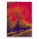 Calzada y árboles contra un cielo de forma preocupante rojo