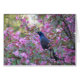 Un grandioso chacal azul y negro encaramado en una rama en medio de hermosas flores de manzana de cangrejo rosa en plena floración. ¡Un regalo encantador para ti o para alguien especial!