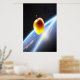 Una manzana roja y amarilla en el espacio con espacio y un planeta en el fondo. Este es un arte generado por IA.