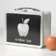 manzana plateada con icono de hoja. Color de fondo personalizado. Texto personalizado en ambos lados.