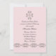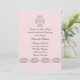 Una elegante invitación para una celebración religiosa de chica con un pergamino vintage con una cruz de coordinación en un suave fondo rosa. El panel posterior es perfecto para recibir información.La tarjeta es fácil de personalizar con su redacción, fuente, color de fuente y elección de seis tipos de papel.