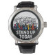Añada una declaración y un toque americano a su día con el reloj "STAND UP TODAY", una alegre mezcla de color y espíritu patriótico. Con gestos icónicos, y un telón de fondo de la manifestación, estos diseños son perfectos para aquellos que creen en un país de libertad, libertad y democracia o aman la política o solo quieren destacar. Ya sea que estés bebiendo de una taza, moteando un té o decorando tu laptop, estos productos te permiten celebrar la libertad con el tiempo y el estilo