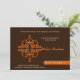 Bonita y única tarjeta de invitación islámica Aqiqah con una huella de damasco ornamentado en forma de llave, los colores son marrón, naranja y blanco, árabe - diseño asiático. El dicho islámico de Basmallah: En nombre de Alá, Más Gracioso, Más Misericordioso.