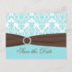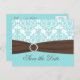 Aqua Blue, Brown, White Damask Guardar la tarjeta