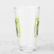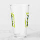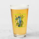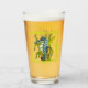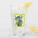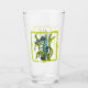 Este vaso de vidrio para bebidas tiene un fantástico dragón marino que es azul acuático y blanco con su cola envuelta alrededor de algas marinas dentro de un borde verde claro ondulado.
