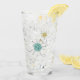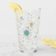 Este fabuloso tumbler de vidrio moderno de mediados de siglo presenta estallidos franciscanos en azul y amarillo acuático. ¡Haz una declaración retro cuando estés bebiendo!