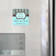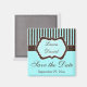 Esta rayada azul, marrón y blanca acuática salva la fecha imán que coincide con la invitación de boda que se muestra a continuación. El texto es todo personalizable.