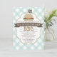 El verano es un buen momento para tener una ducha de bebé en barbacoa. Estas parejas invitan a una ducha de bebé con una verde azulada manta de pino azul acuático y un patrón de tela de mesa de gingham, banner y un diseño de bandera de hamburguesa y escotilla de dientes son lindos y divertidos. Pintura © Chrissy H. Studios, LLC. Todos Los Derechos Reservados.