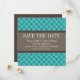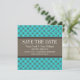 Fancy Lattice de moda y moda Salven los anuncios de fecha con un círculo elegante y un patrón de rombo sobre un vibrante fondo turquesa con un amplio borde marrón de dos tonos. Esta elegante invitación a guardar la fecha es perfecta para anunciar a su boda moderno. Fácil de personalizar, simplemente agregue los detalles de su boda en los campos de texto proporcionados. Haga clic en "Personalizar" para encontrar más opciones de personalización.
