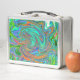 Este original dibujo digital de aceite de My Rubio Garden presenta un diseño de arte retro de Aqua, Naranja y verde Groovy con azul real, artreuse y olas de color verde de espuma marina. El resultado es un diseño ruidoso y abstracto que te encantará.