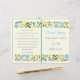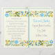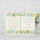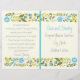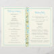Ceremonia de boda de color azul acuático vintage, floral amarilla y programa plegado fiesta con un ilustracion de una frontera floral hecha de flores silvestres bonitos en tonos de hojas de color agua, amarillo y verde oliva sobre fondo de marfil. Texto en gris y agua. El diseño de esta boda, elegante, elegante y coqueto, es completamente personalizable y forma parte de un conjunto boda. Perfecto para su jardín rústico o boda de verano de bosques. Tendrás que doblarlo en el centro. Elija sólo este tipo de valor de papel a medida que se dobla bien.