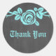 Chalkboard Dulce y Rosa bonito Gracias Pegatinas en turquesa con un solo rosa encantador en una vid sobre un fondo de pizarra. Este elegante diseño es perfecto para un boda de primavera o verano. Fácil de personalizar, simplemente agregue el texto personalizado de su elección en los campos de texto proporcionados. Haga clic en "Personalizar" para encontrar más opciones de personalización.