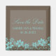 Elegante y refinado Rustic Floral Save the Date Magnet con un fondo de madera de dos tonalidades de arte digital de color marrón oscuro y una hermosa cascada de hermosas flores enmarcando el fondo del diseño en turquesa. Este dulce diseño es perfecto para anunciar un boda de temporada con temática de jardín o exterior. Fácil de personalizar, simplemente agregue los detalles de su boda en los campos de texto proporcionados. Haga clic en el botón "Personalizar" para encontrar opciones de personalización adicionales.