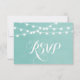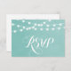 Moda moderna boda verano RSVP diseño de tarjeta de respuesta con elegantes y sencillas luces de cuerda brillantes colgando por encima y una elegante mezcla de fuentes de escritura modernas y caligráficas sobre un fondo de textura falso color de agua impreso. Un diseño sencillo y elegante, perfecto para el verano. Haga clic en el botón IT PERSONALIZAR para personalizar de fuentes, mueva el texto y cree su propio diseño único de invitación.