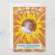 ¡Aquí viene el hijo! Anuncio de nacimiento para bebé, personalizable con nombre y foto. La imagen de la foto está enmarcada por las llamas amarillas del sol. El arte original se crea digitalmente en Procreate, utilizando texturas de papel y pinceles de gouache.