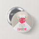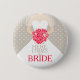 La novia gráfica elegante con el velo que sostiene un ramillete de los rosas rojos estilizados que casan el botón del perno badge. Lee aquí viene la novia. Grande para las duchas nupciales, las noches de la gallina o los ensayos del boda.