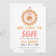 Estas invitaciones, que presentan un diseño vibrante de explosión de sol en cálidos tonos naranja y amarillo, capturan la alegría y el calor de un niño recién nacido. El fondo, inspirado en las acuarelas, aporta un toque de suavidad y elegancia. Perfecto para una ducha de bebé con la temática "Eres mi sol", estas invitaciones seguramente alegrarán tu día especial.