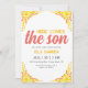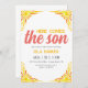 Estas invitaciones, que presentan un diseño vibrante de explosión de sol en cálidos tonos naranja y amarillo, capturan la alegría y el calor de un niño recién nacido. El fondo, inspirado en las acuarelas, aporta un toque de suavidad y elegancia. Perfecto para una ducha de bebé con la temática "Eres mi sol", estas invitaciones seguramente alegrarán tu día especial.