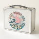 Disfrute de los días soleados y de las buenas vibraciones con esta lonchera de inspiración retro "Here Comes The Sun". Con audaces rayos solares y elementos oceánicos ondulados en tonos cálidos y vintage, esta alegre obra de arte aporta energía nostálgica de verano de los años 70 dondequiera que vaya. Perfecto para los amantes de la playa, festivales de verano, sopas de boho y para los amantes del sol y del mar.