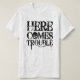 Aquí viene el problema:: Magníficas, diversión y nuestro sucio aquí vienen las características de la camisa del problema una tipografía apenada vintage de la roca y un pequeño emoticon salvaje en el centro. Nuestro aquí viene el diseño del problema es lleno de mala actitud del chica y de fun.com