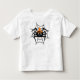 Una linda araña negra vestida con un gorra de brujas naranja de Halloween en la araña de Halloween con camisetas web, trajes para el cuerpo, tarjetas, pegatinas, bolsas de té, imanes y otros artículos de diseño de Halloween.