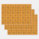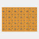 Un fondo naranja brillante crea una base perfectamente temática de Halloween para un patrón repetido de telaraña negra arrastrándose con arañas. Estas arañas, inspiradas en la falsa viuda, tienen un cráneo blanco brillante en sus abdomen y otras marcas blancas en su cuerpo y piernas.